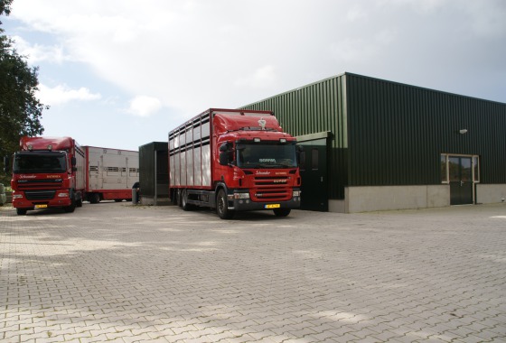 In 2010 zijn wij overgegaan naar een nieuwe locatie aan de A1 bij Bathmen. Op de nieuwe locatie hebben wij ons transport bedrijf uitgebreid met een export verzamelplaats en een reinigings- en ontsmettingsplaats. De export verzamelplaats is geschikt voor het verzamelen van rundvee, hierbij bieden wij de mogelijkheid runderen klaar te zetten voor export naar het buitenland. Tevens wordt de verzamelplaats gebruikt om runderen te verzamelen voor diverse slachterijen in Nederland. Hieraan gekoppeld is de reinigings- en ontsmettingsplaats. Iedere wagen die bij ons lost, wordt volgens de regels van de Nederlandse Voedsel en Waren Autoriteit (NVWA) gereinigd en ontsmet. Tevens bieden wij de mogelijkheid om veewagens voor de 2de maal te ontsmetten indien er sprake is van een dierziekte of als de NVWA dat vereist. Contact gegevens: Schoemaker Veetransport Marsdijk 2a 7437 RX Bathmen 0570-541307 info@schoemakerveetransport.nl