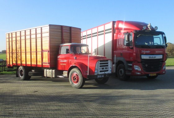 Schoemaker Veetransport is een transportbedrijf wat zich door de jaren heen heeft gespecialiseerd in het vervoer van dieren. Denk hierbij aan koeien, stieren, kalveren, varkens, biggen, schapen, enz. Op dit moment ben ik, Geert Schoemaker, de derde generatie aan het roer.